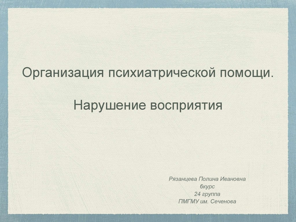 Организация психиатрической помощи.Нарушение восприятия