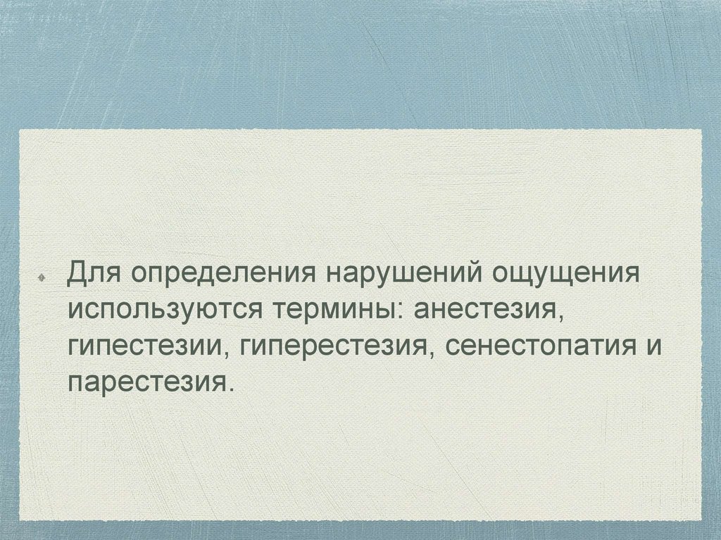 Для определения нарушений ощущенияиспользуются термины: анестезия,