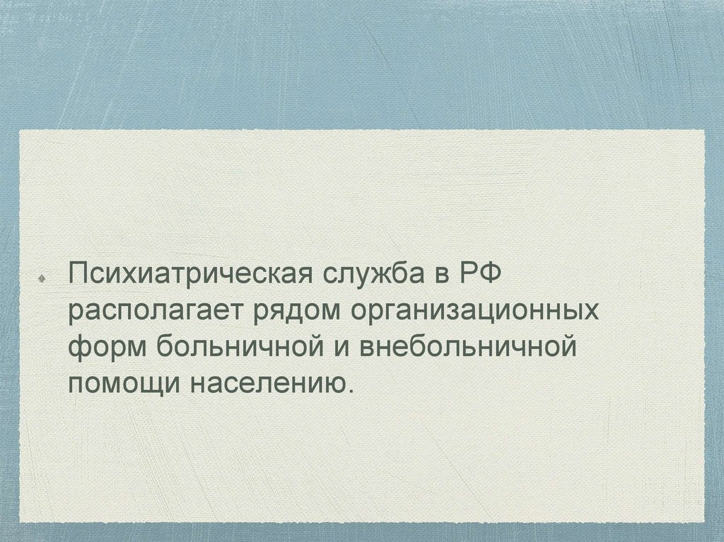 Психиатрическая служба в РФрасполагает рядом организационных