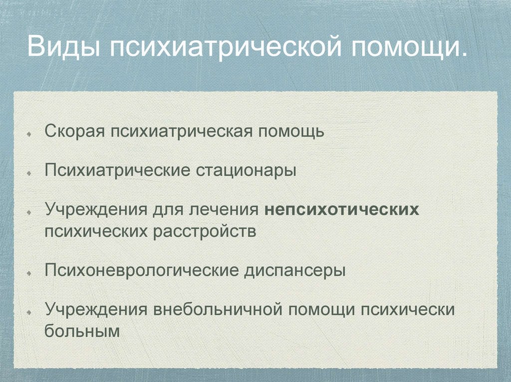 Психиатрическая помощь — видспециализированной медицинской