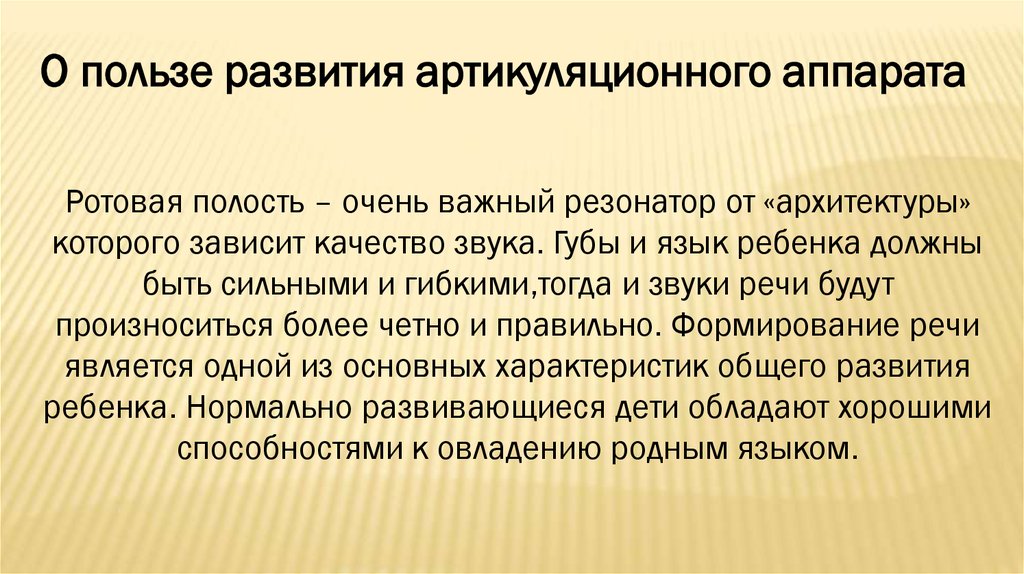 О пользе развития артикуляционного аппаратаРотовая полость – очень важный резонатор от «архитектуры»