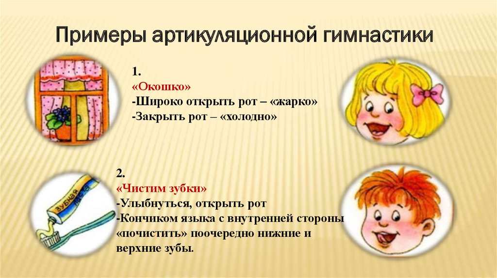 Артикуляционная гимнастикаДля выработки полноценных движений губ, языка, челюсти