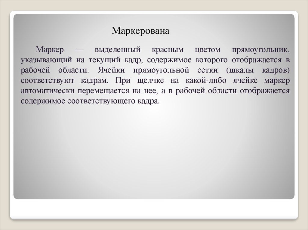 соответствуют кадрам. При щелчке на какой-либо ячейке маркер