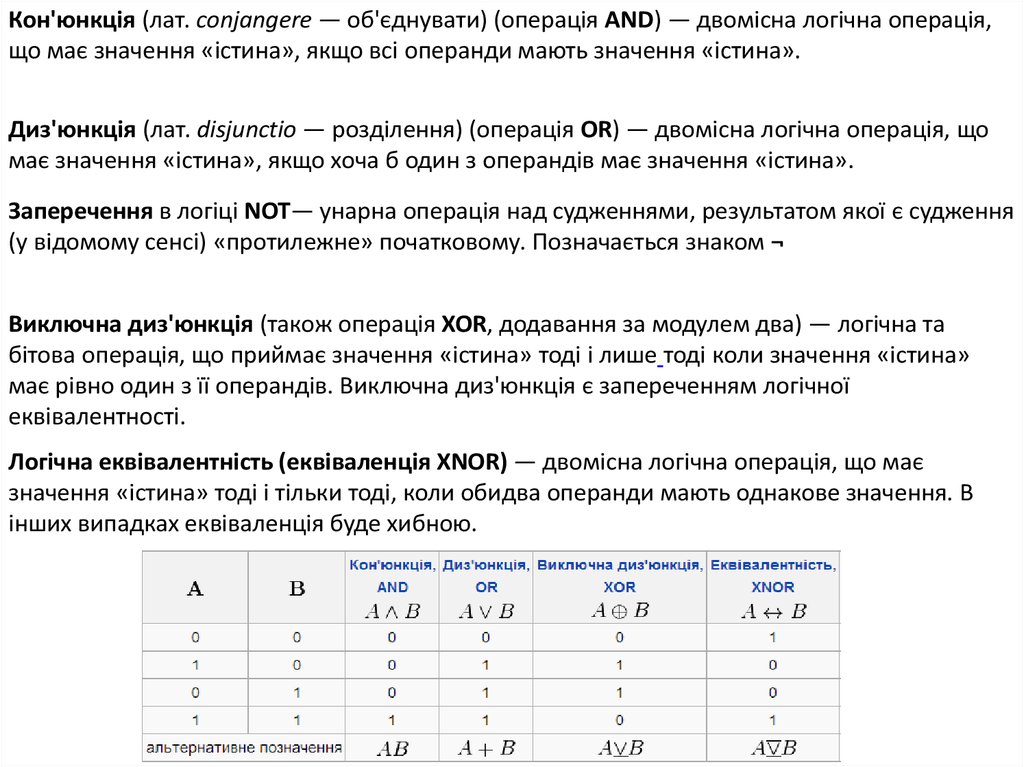 Кон'юнкція. Диз'юнкція. Заперечення в логіці NOT