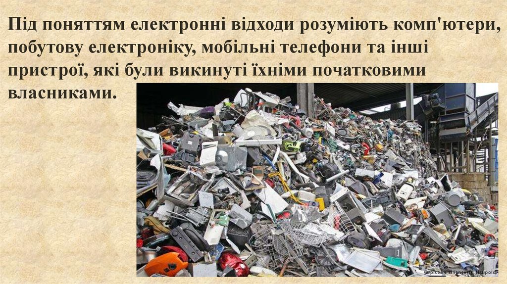 Під поняттям електронні відходи розуміють комп'ютери,побутову електроніку, мобільні телефони та інші