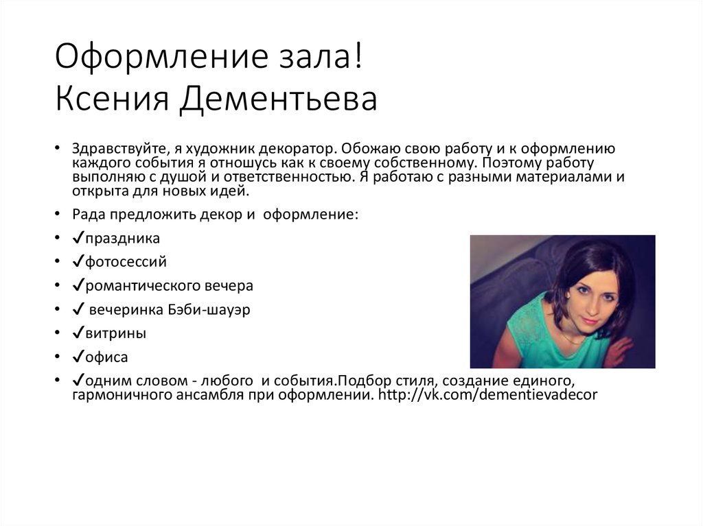 • Рада предложить декор и оформление: