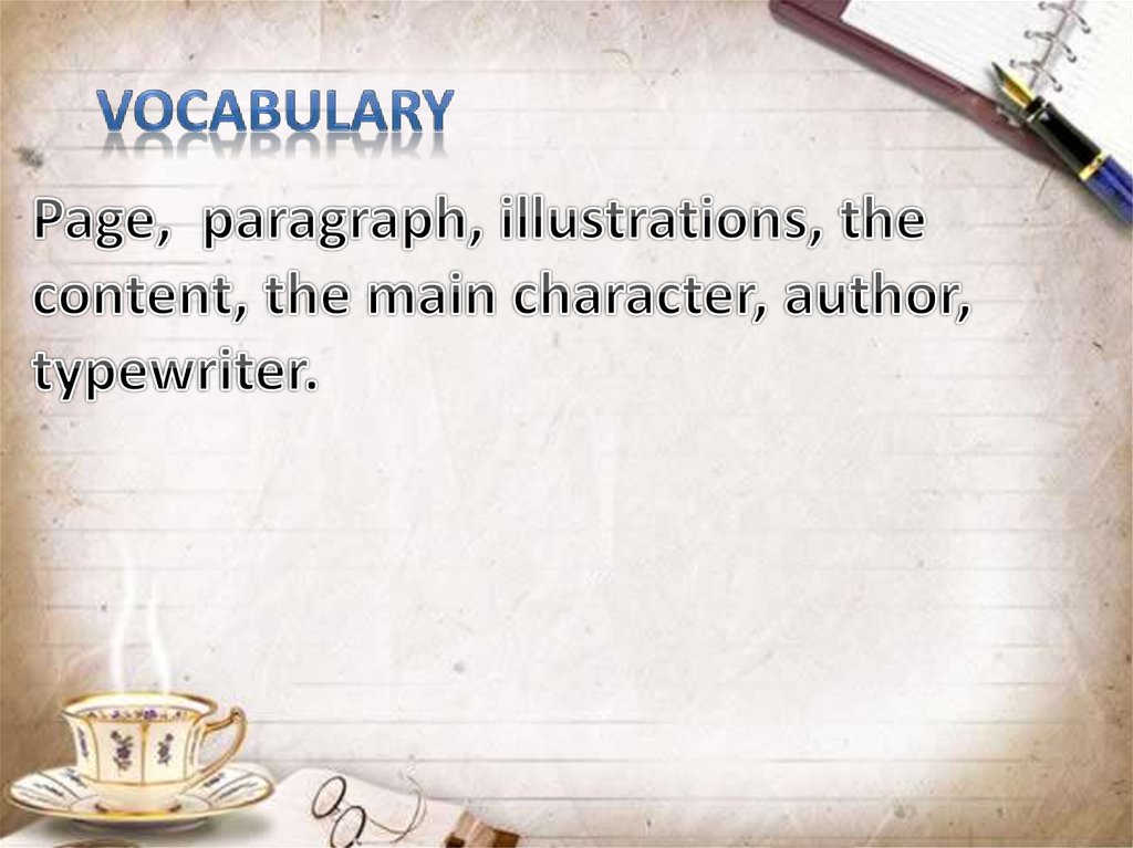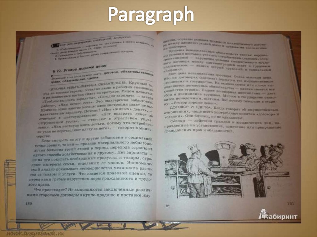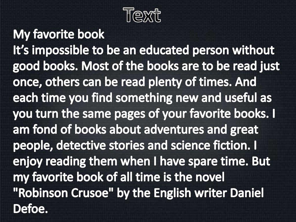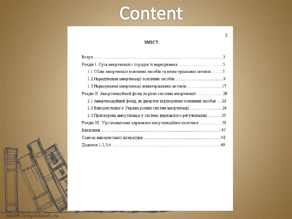English presentation. Books