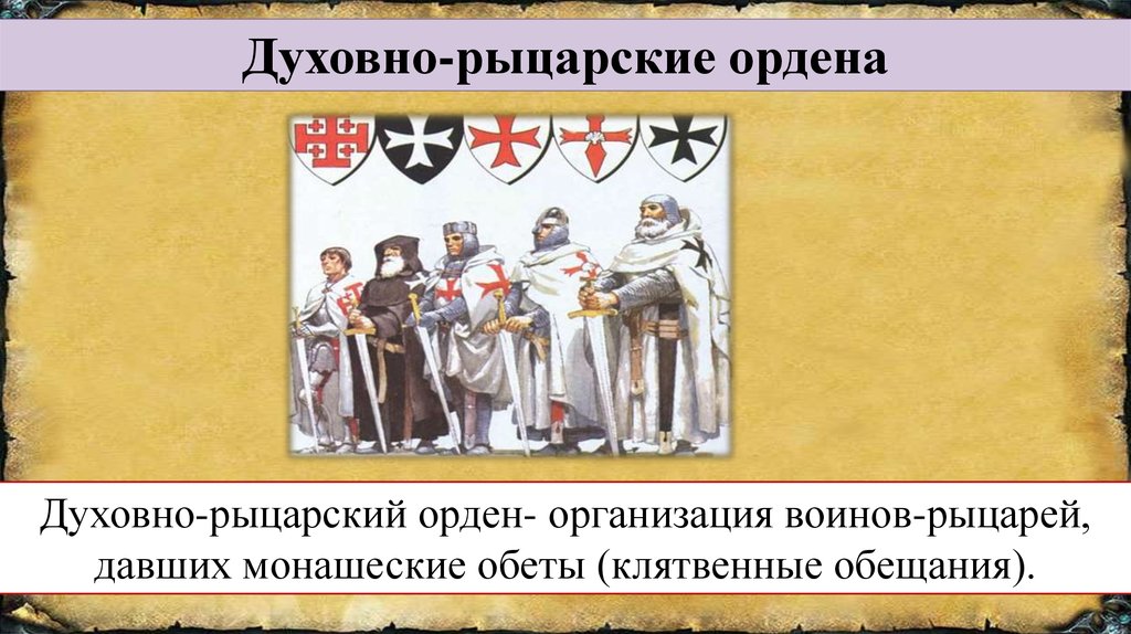 Духовно-рыцарские орденаДуховно-рыцарский орден- организация воинов-рыцарей,