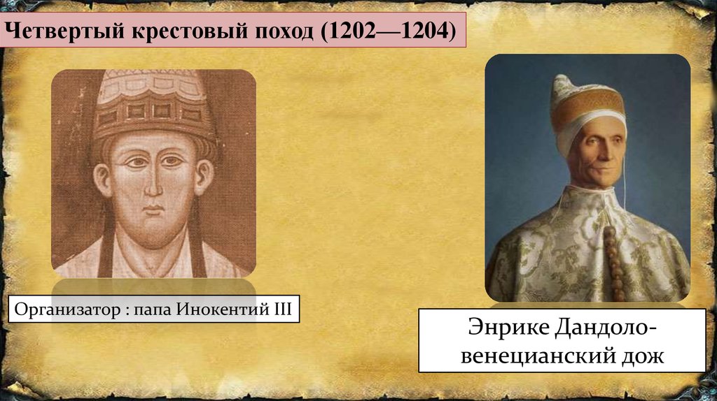 Четвертый крестовый поход (1202—1204)Организатор : папа Инокентий III