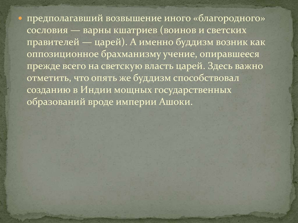 предполагавший возвышение иного «благородного»сословия — варны кшатриев (воинов и светских