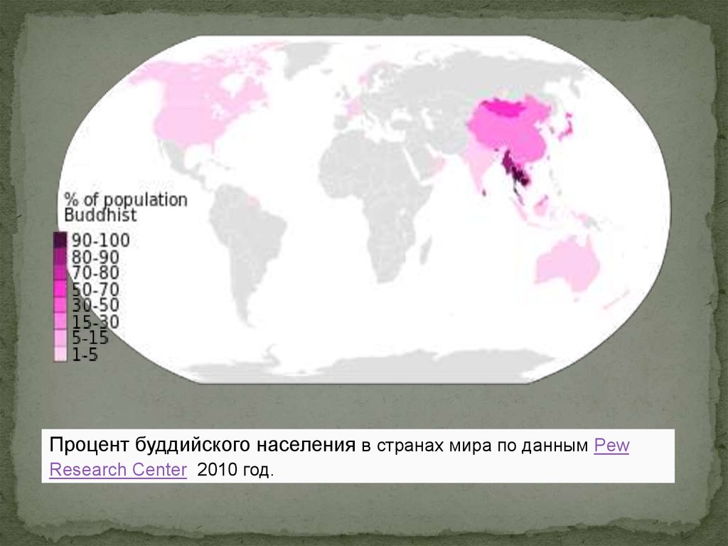 Процент буддийского населения в странах мира по данным PewResearch Center 2010 год.