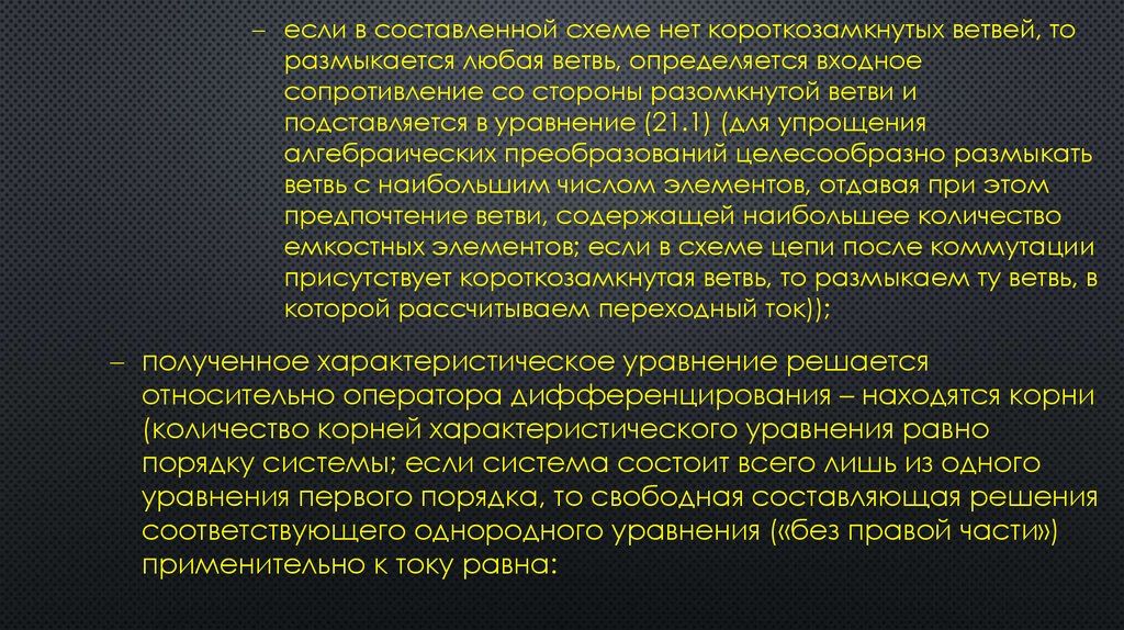 ЛЕКЦИЯ 21. РАСЧЕТ ПЕРЕХОДНЫХ ПРОЦЕССОВ В РАЗВЕТВЛЕННЫХ ЛИНЕЙНЫХ