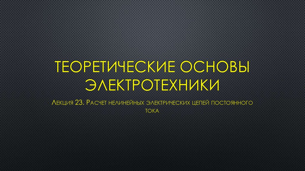 ЛЕКЦИЯ 23. РАСЧЕТ НЕЛИНЕЙНЫХ ЭЛЕКТРИЧЕСКИХ ЦЕПЕЙ ПОСТОЯННОГО