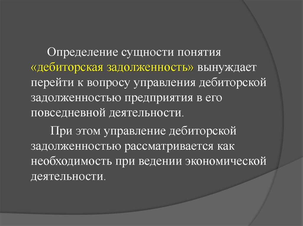 Определение сущности понятия«дебиторская задолженность» вынуждает