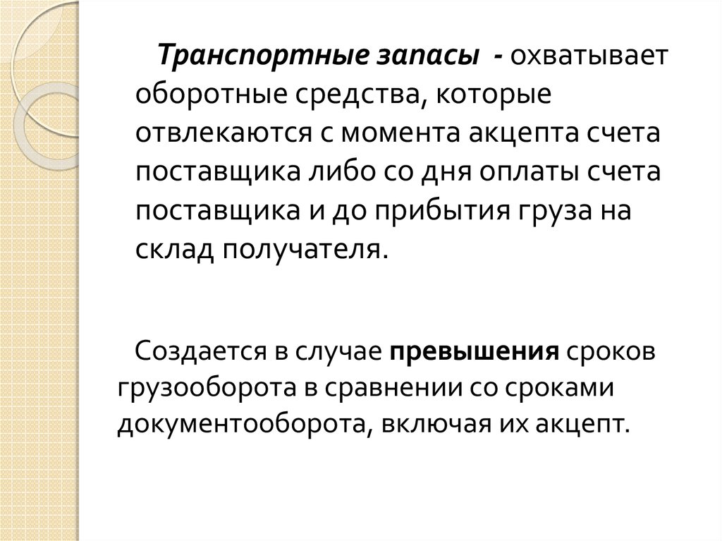 Транспортные запасы(запасы в пути, транзитные запасы) это часть товарных запасов,