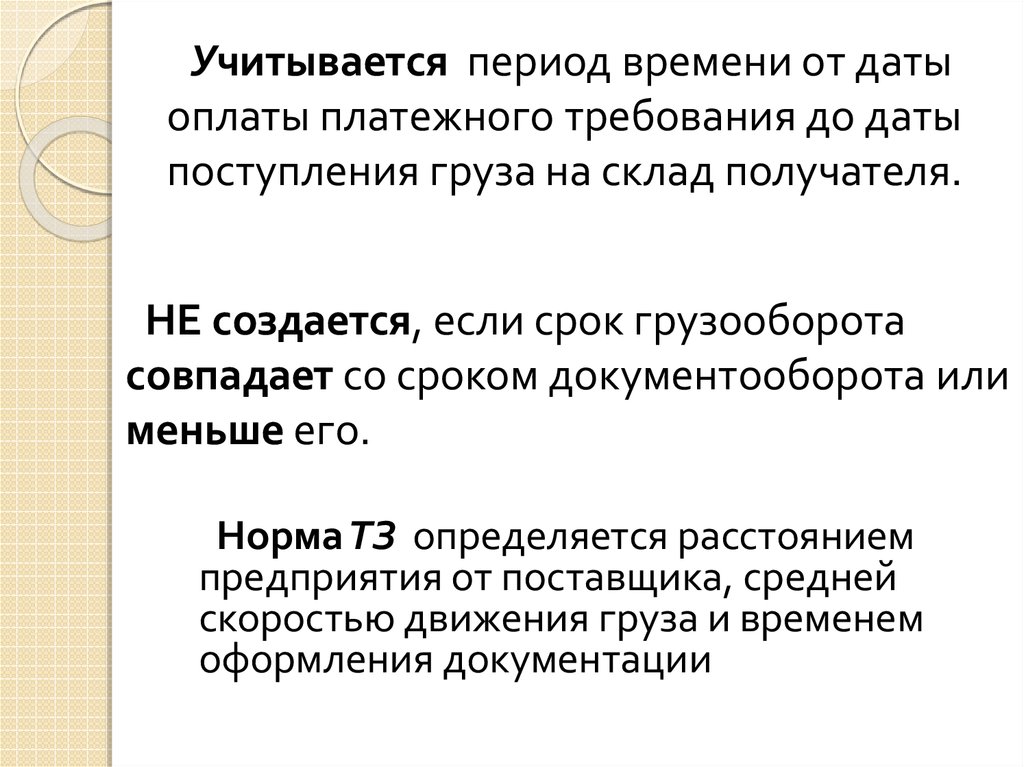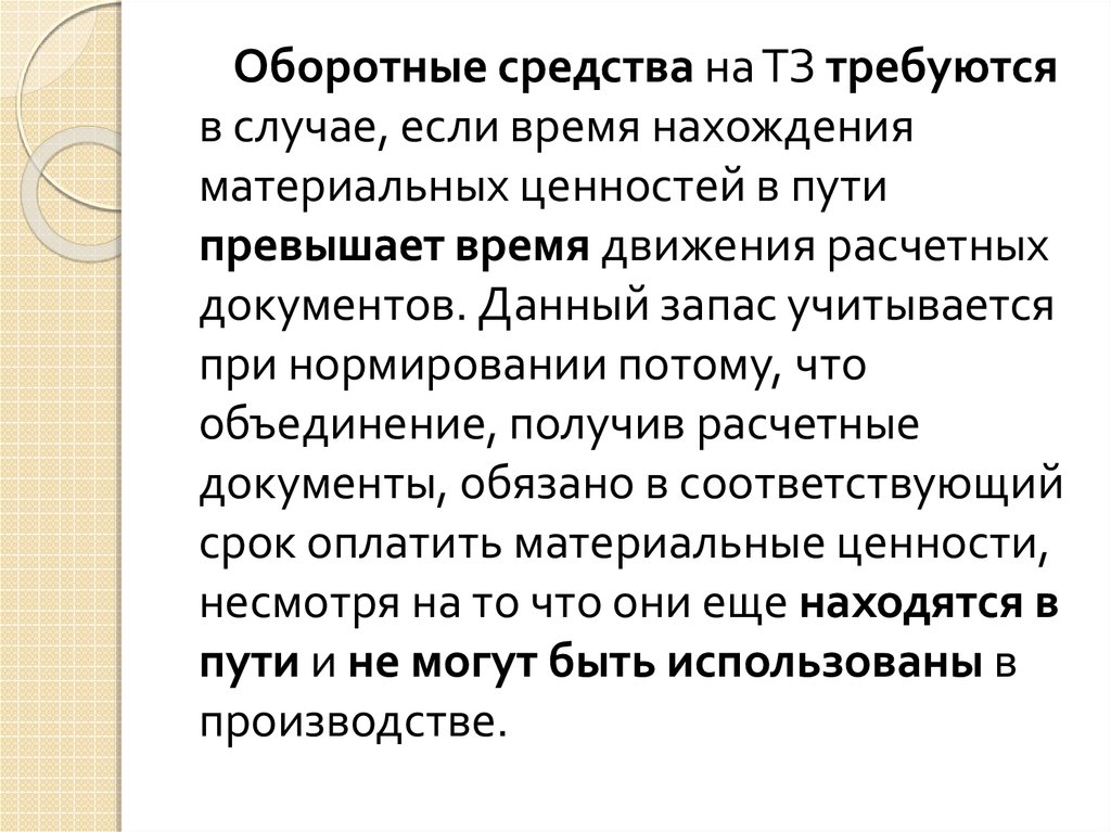 Оборотные средства на ТЗ требуютсяв случае, если время нахождения