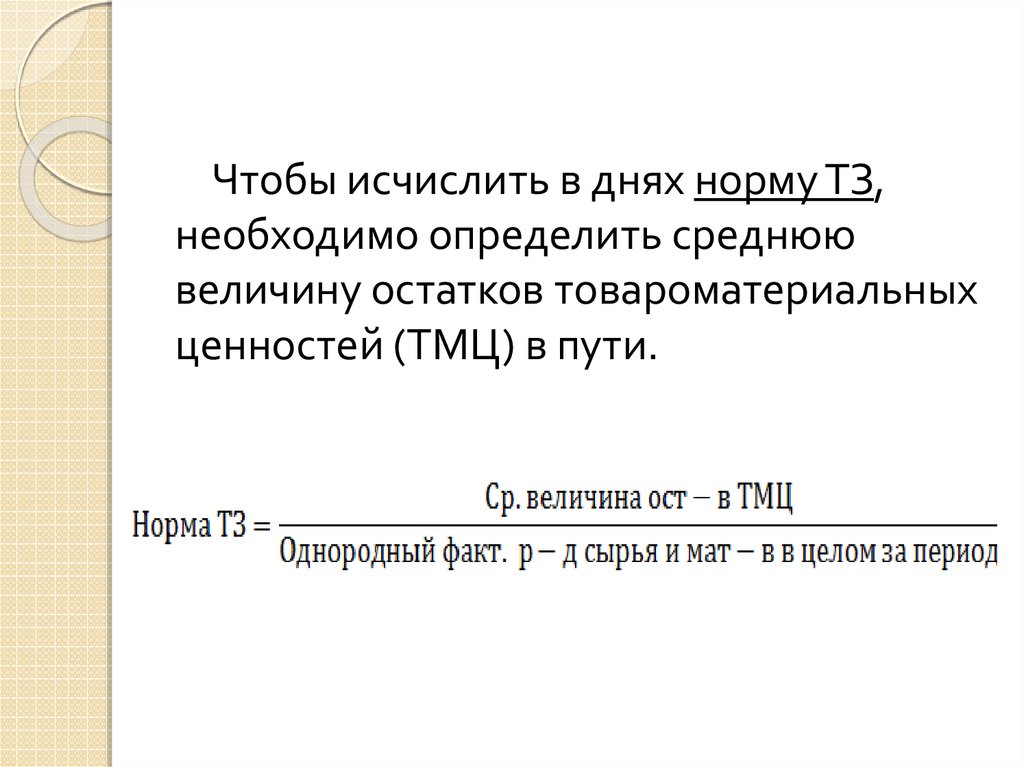 Чтобы исчислить в днях норму ТЗ,необходимо определить среднюю