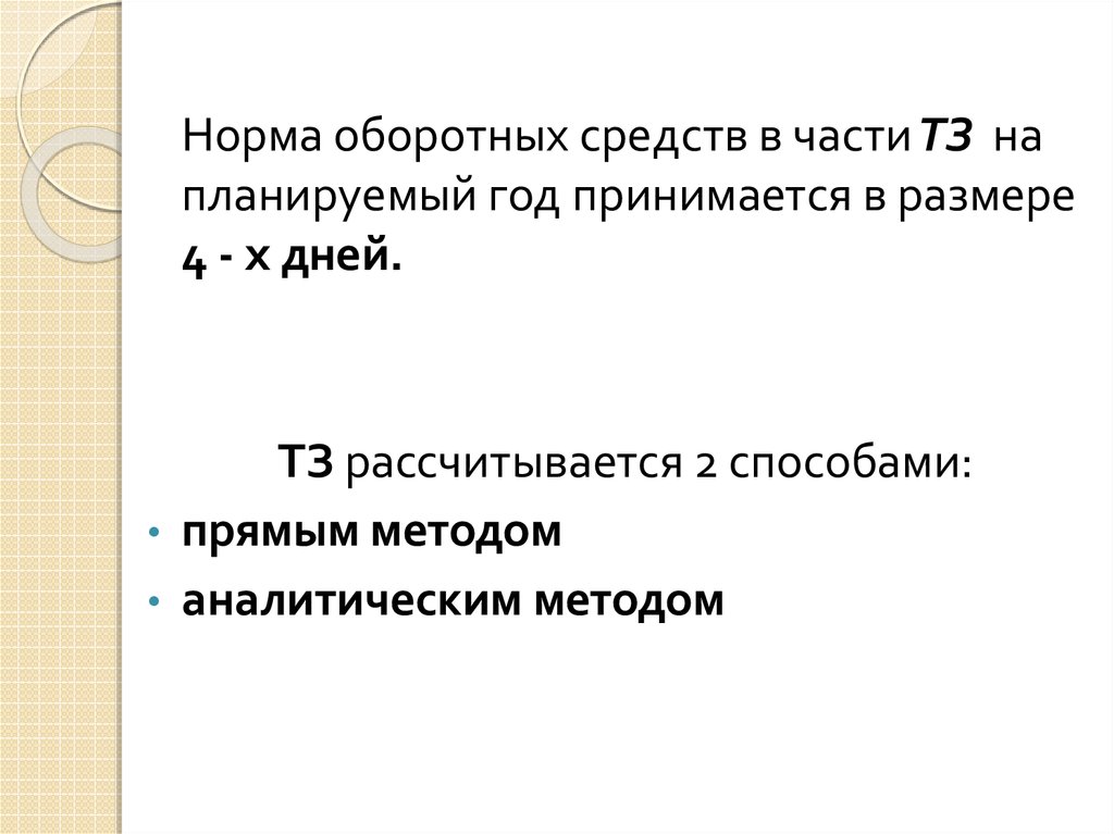 Норма оборотных средств в частиТЗ напланируемый год принимается в размере