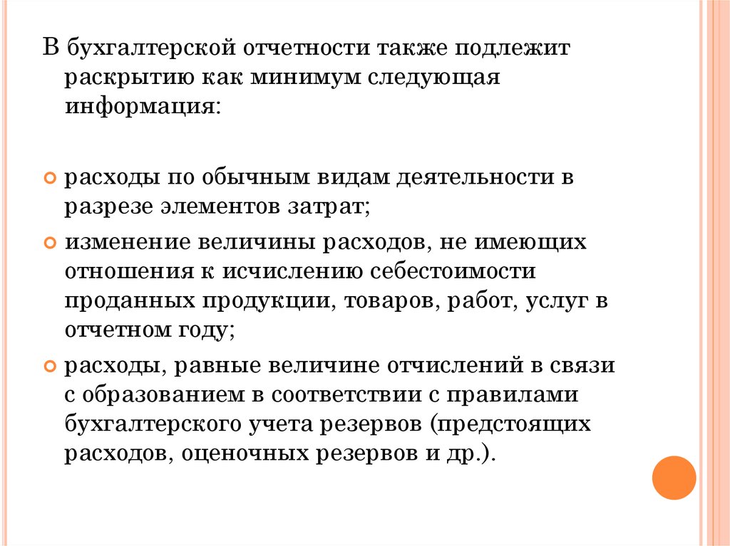 В бухгалтерской отчетности также подлежитраскрытию как минимум следующая