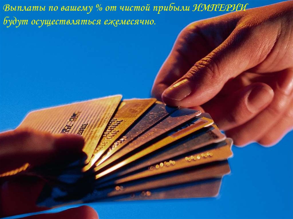 Выплаты по вашему % от чистой прибыли ИМПЕРИИбудут осуществляться ежемесячно.