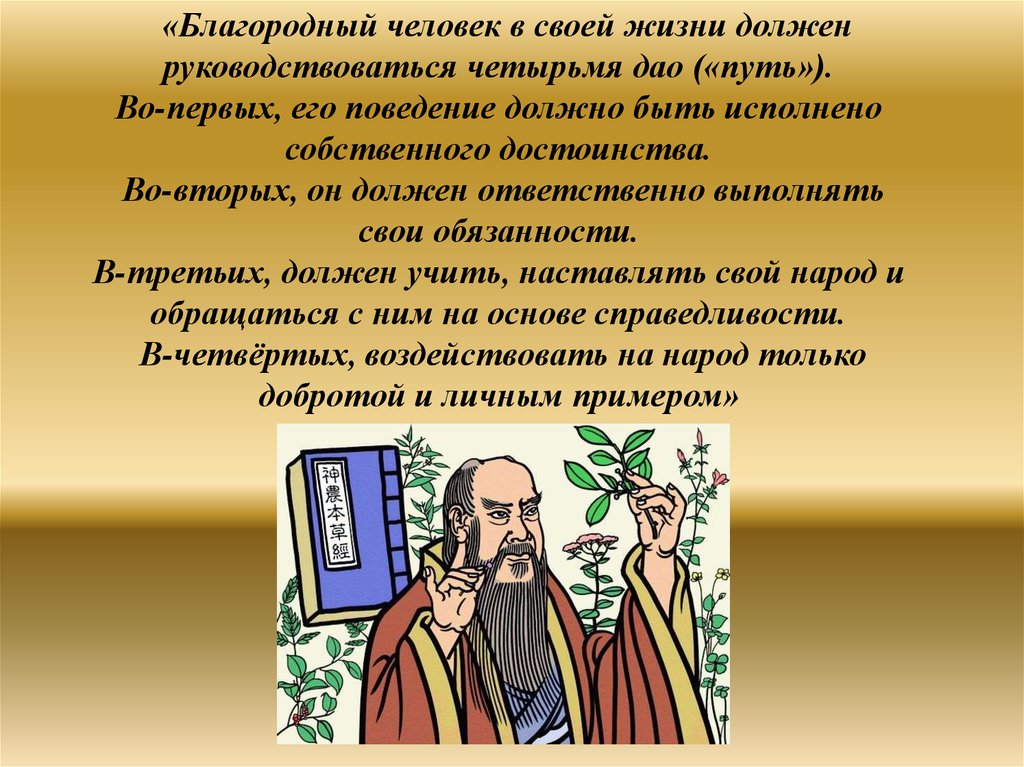 «Благородный человек в своей жизни долженруководствоваться четырьмя дао («путь»).
