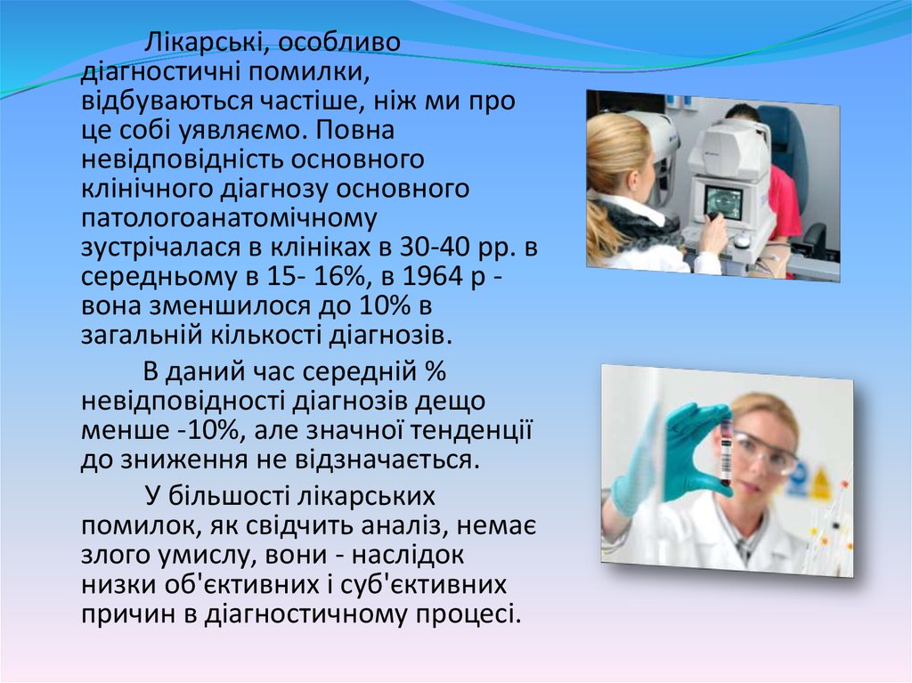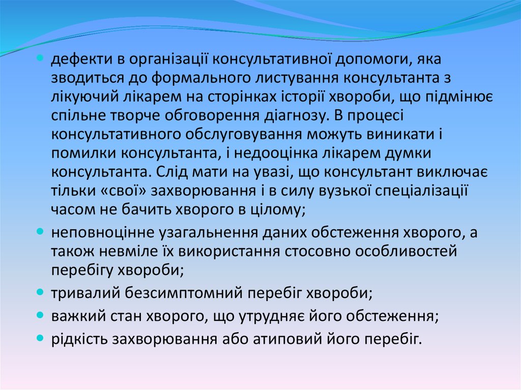 - помилки в розпізнаваннізахворювань і їх ускладнень.