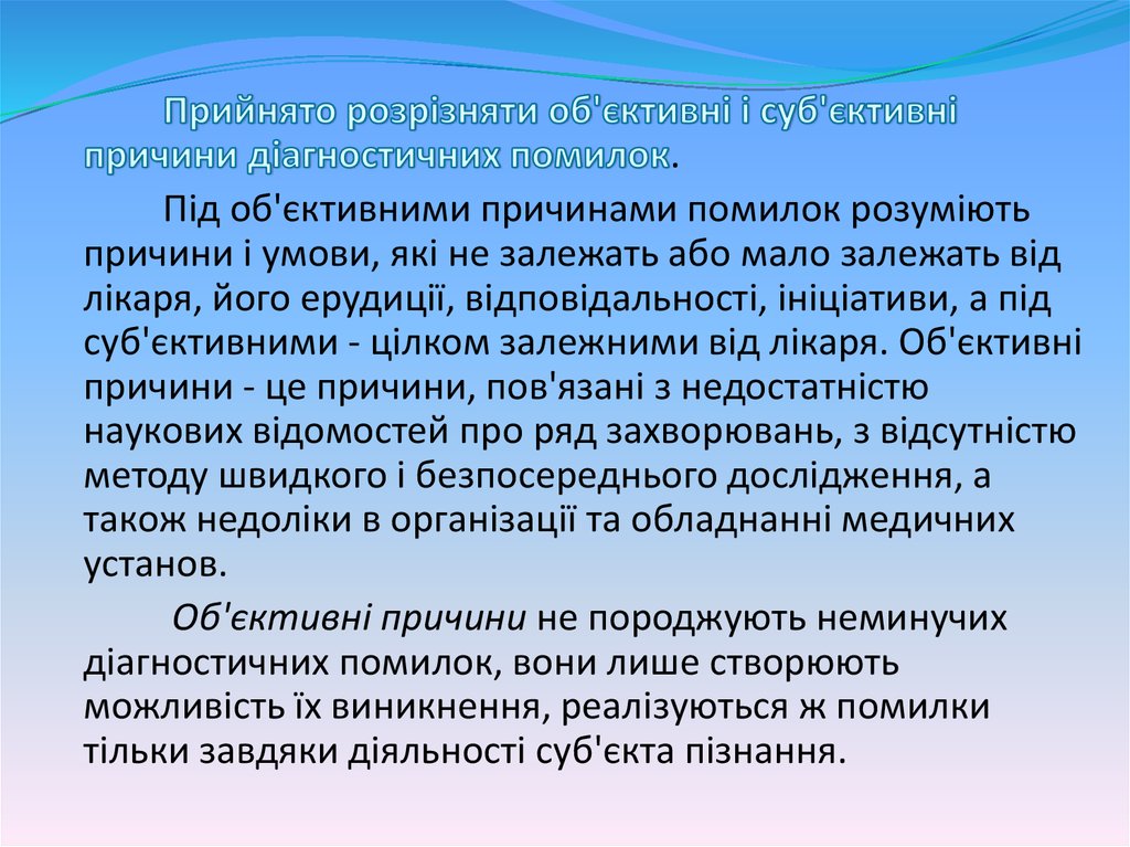 Суб'єктивні причини діагностичних помилок - цепричини, пов'язані з суб'єктивними умовами, з яких