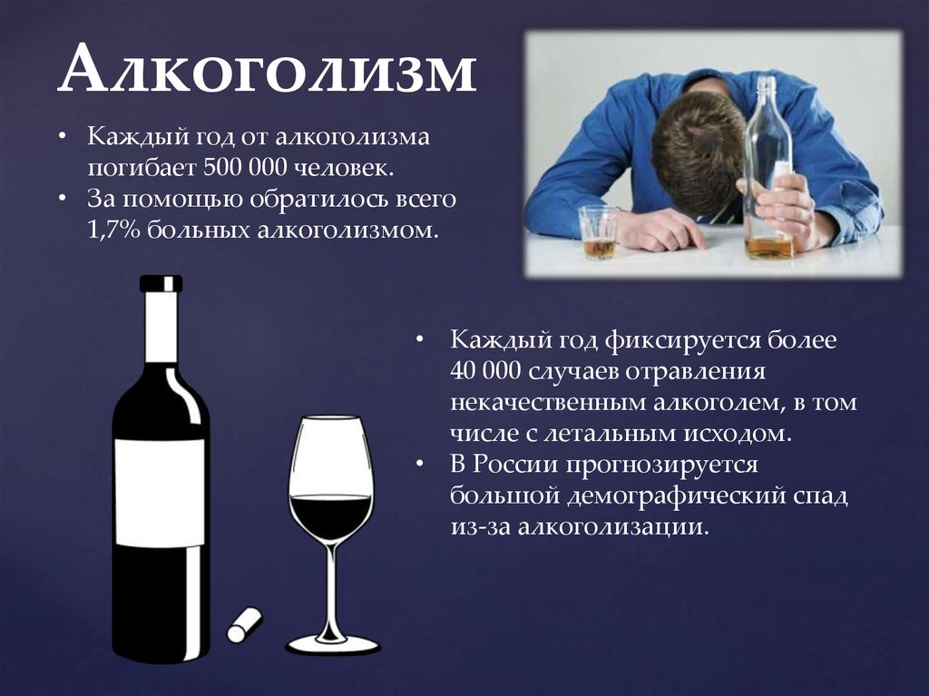Алкоголизм• Каждый год от алкоголизма