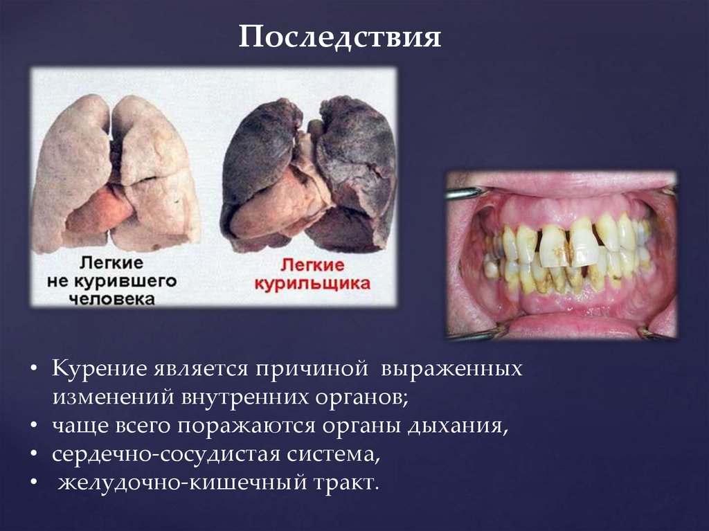 Последствия• Курение является причиной выраженных