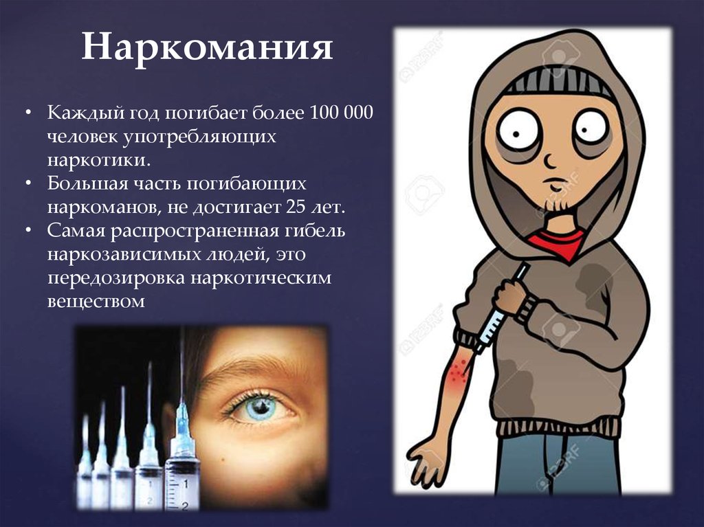 Наркомания• Каждый год погибает более 100 000