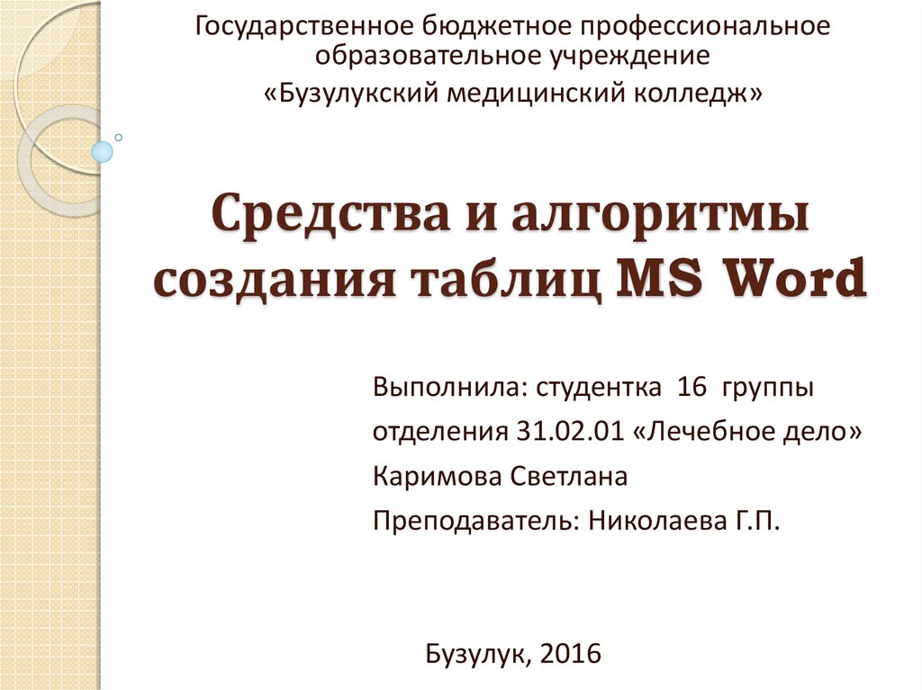 Средства и алгоритмы создания таблиц MS Word