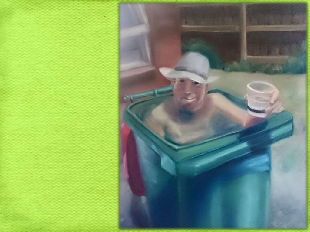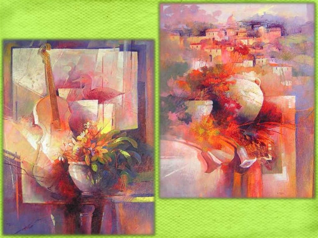 • suoi dipinti sono scritti sucarta stropicciata, incollato