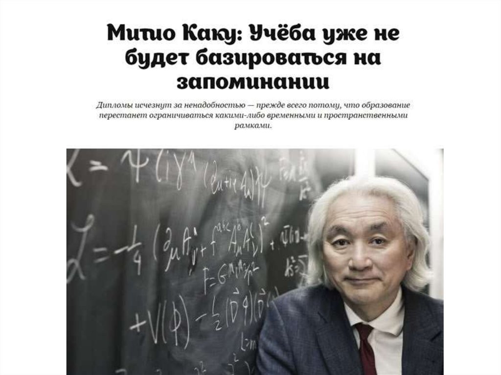 Митио Каку: Учеба уже не будет базироваться на запоминании