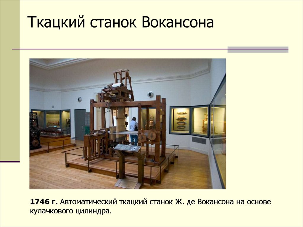 Ткацкий станок Вокансона1746 г. Автоматический ткацкий станок Ж. де Вокансона на основе