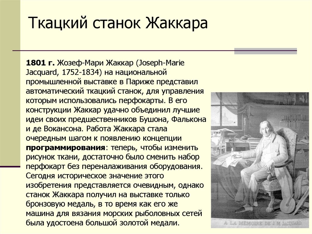 и де Вокансона. Работа Жаккара стала