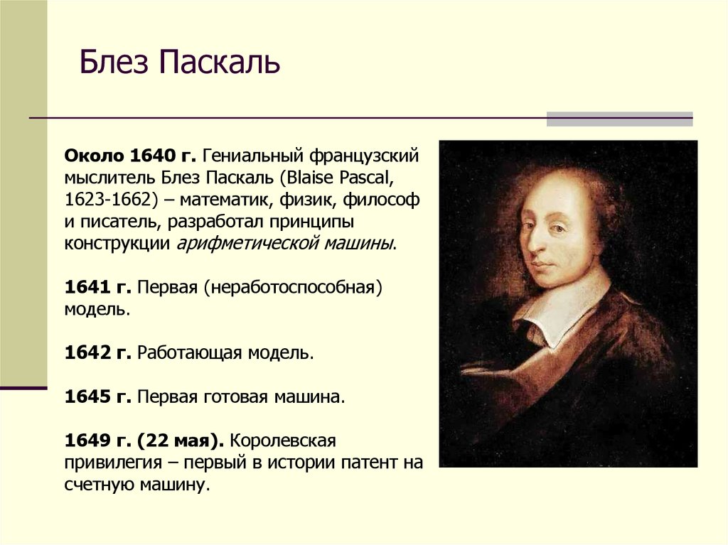 Блез ПаскальОколо 1640 г. Гениальный французский