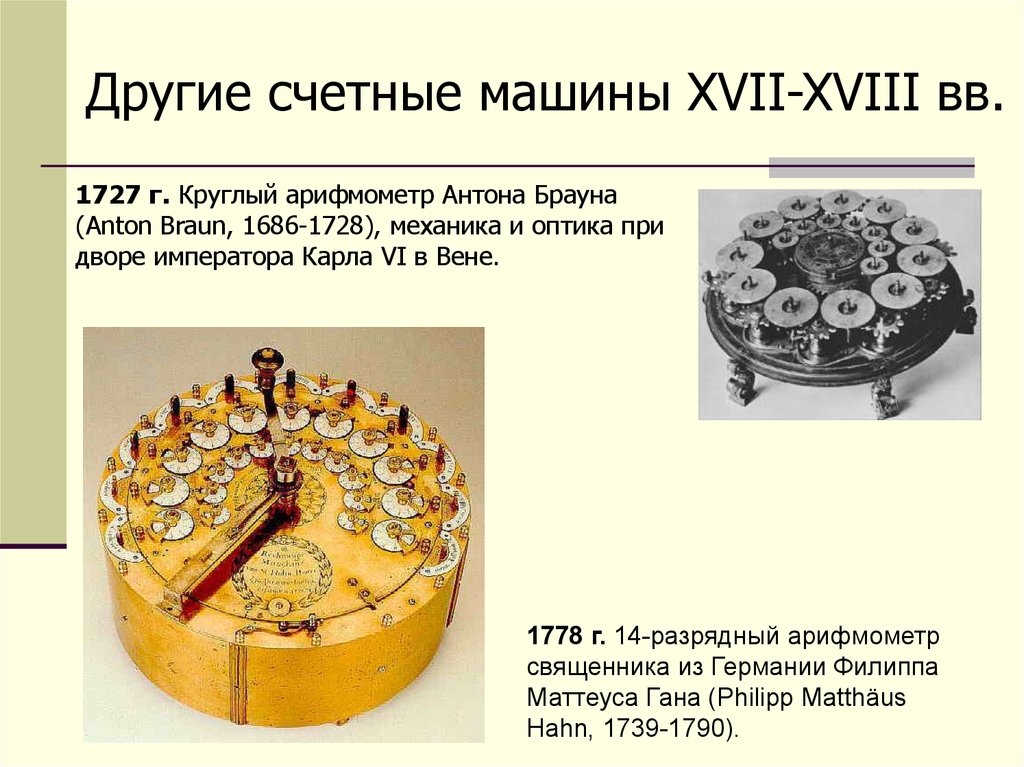 Другие счетные машины XVII-XVIII вв.1666 г. Новый