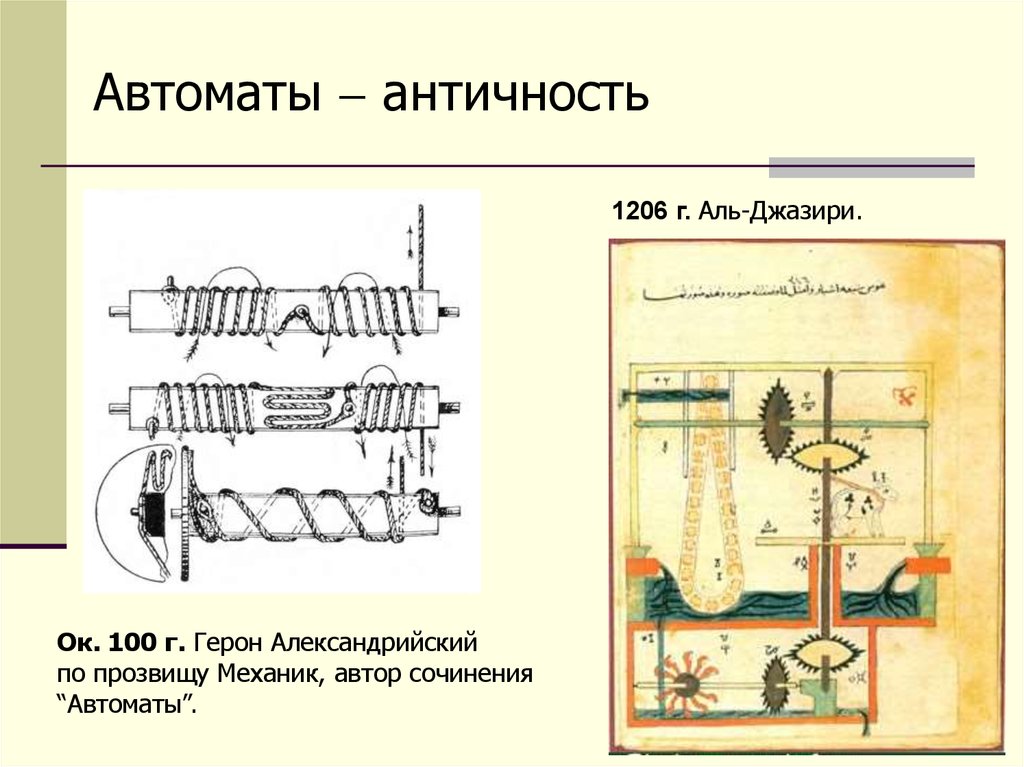 Автоматы античность1206 г. Аль-Джазири.