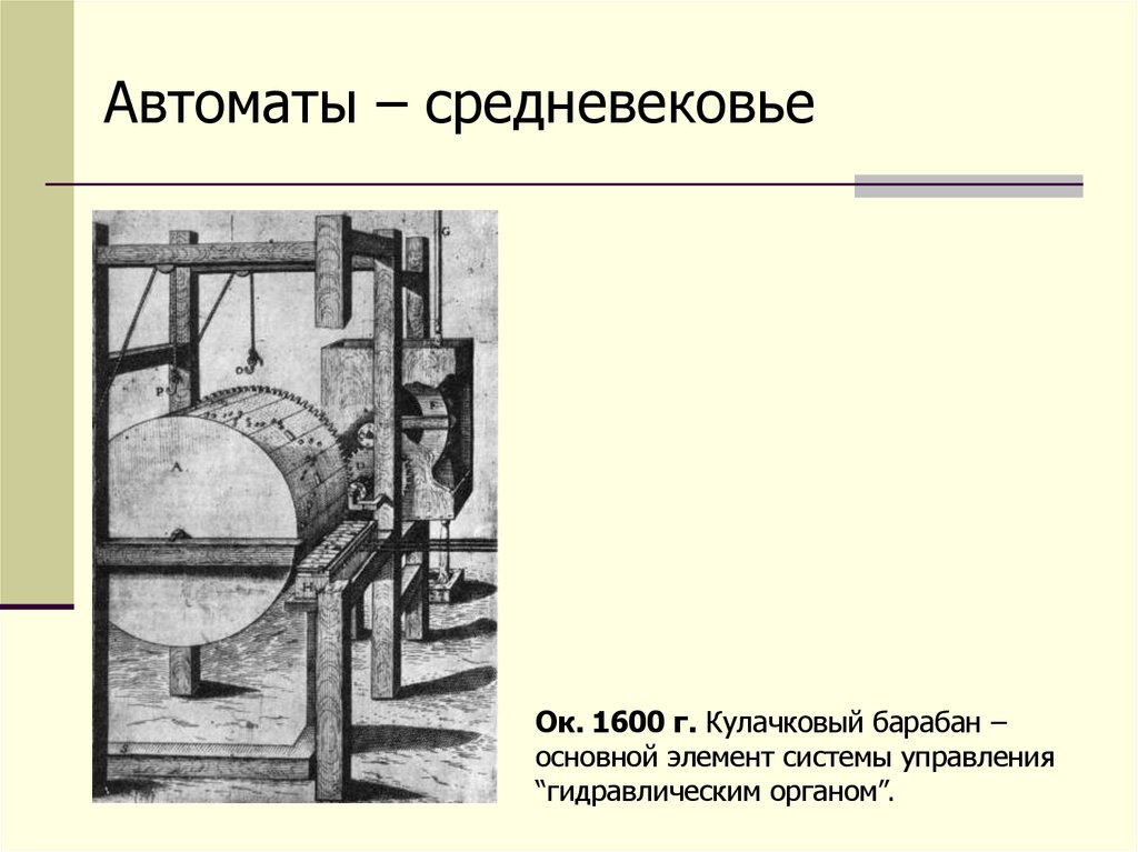Автоматы – средневековьеОк. 1600 г. Кулачковый барабан –