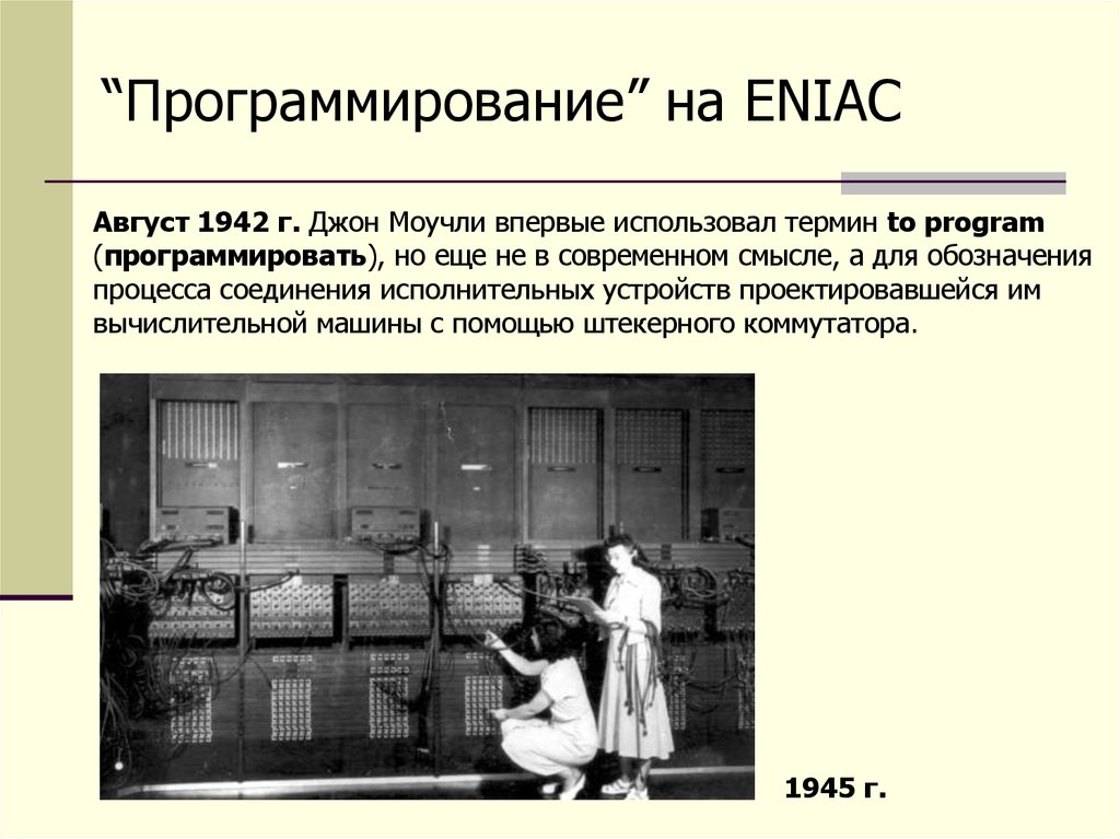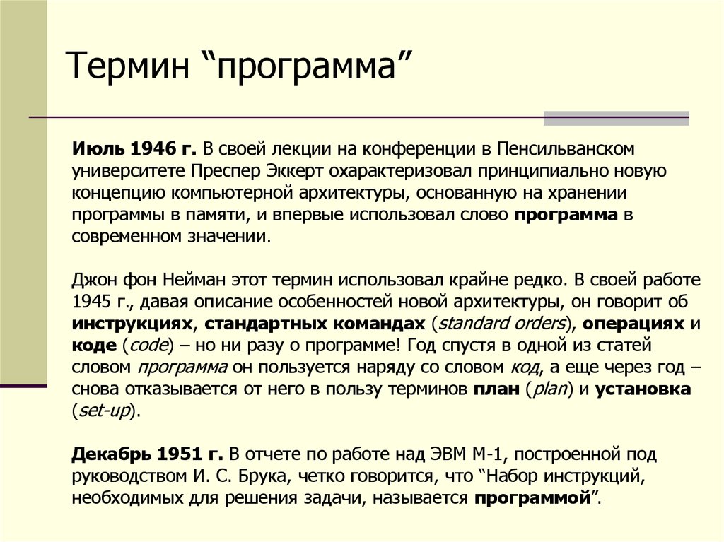 Термин “программа”Июль 1946 г. В своей лекции на конференции в Пенсильванском