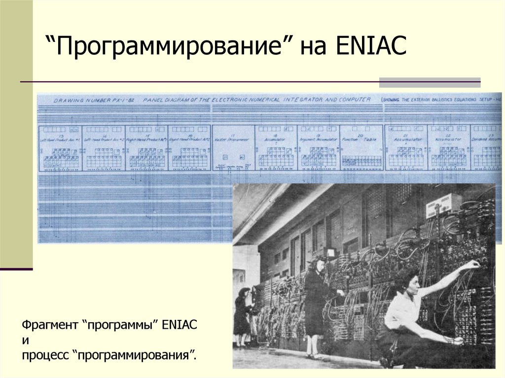 “Программирование” на ENIACФрагмент “программы” ENIAC