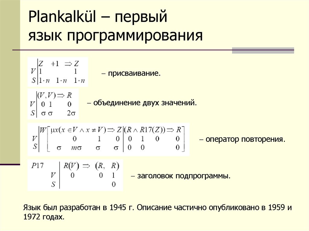 Plankalkül – первыйязык программирования