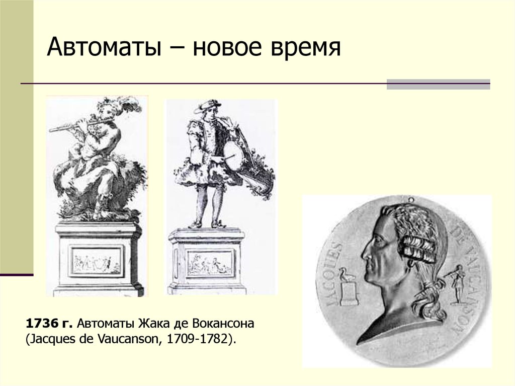 Автоматы – новое время1736 г. Автоматы Жака де Вокансона