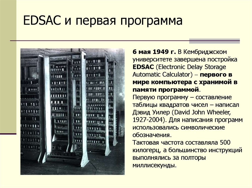 EDSAC и первая программа6 мая 1949 г. В Кембриджском