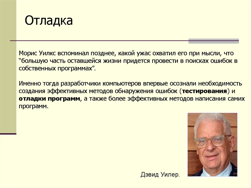ОтладкаМорис Уилкс вспоминал позднее, какой ужас охватил его при мысли, что