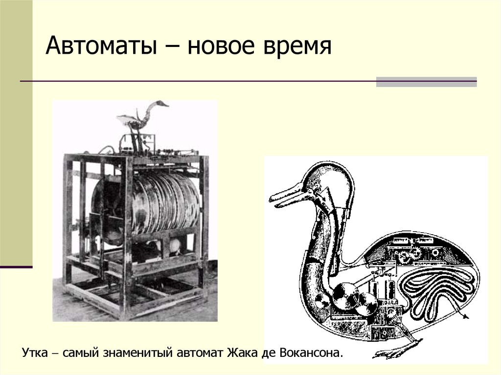 Автоматы – новое времяУтка самый знаменитый автомат Жака де Вокансона.