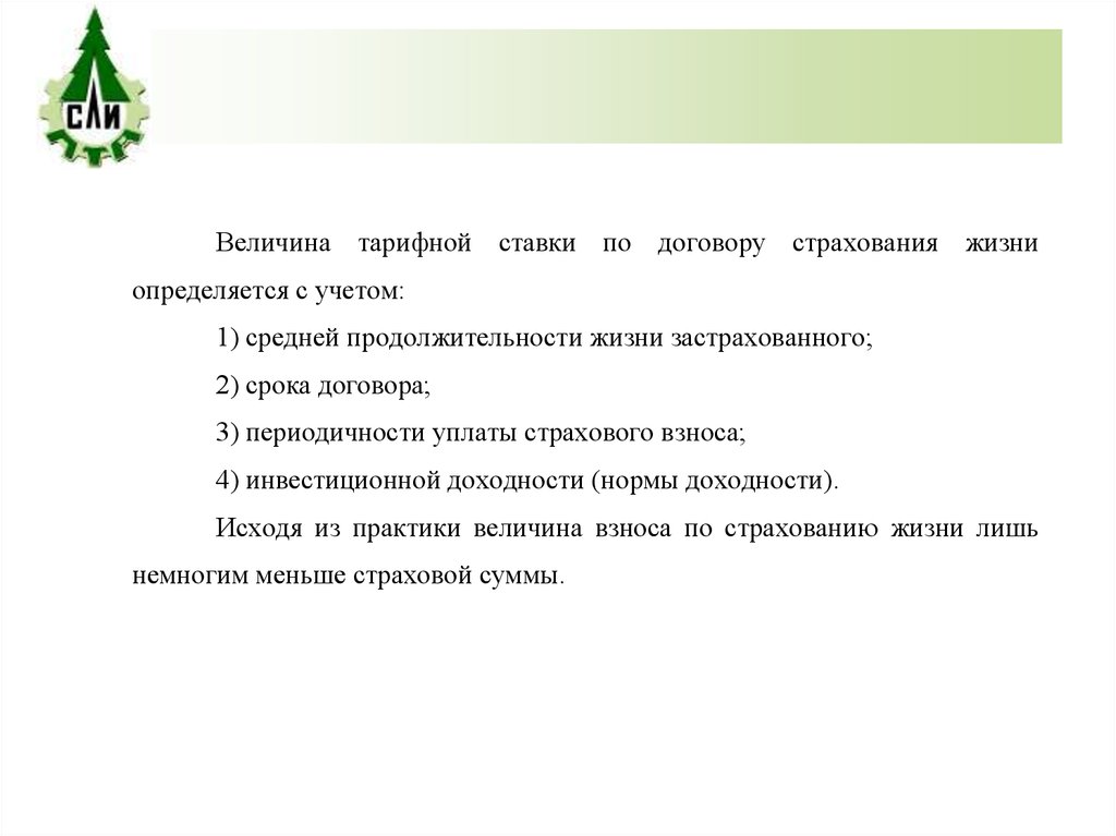 Величина тарифной ставки по договору страхования жизниопределяется с учетом:
