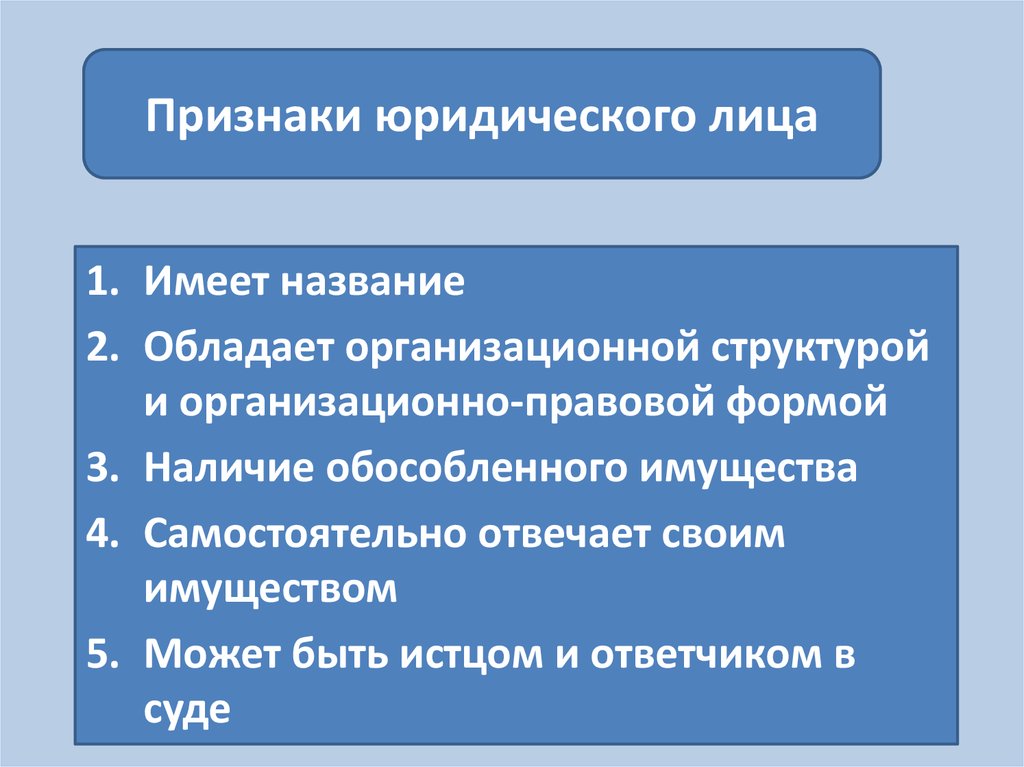Признаки юридического лица1. Имеет название