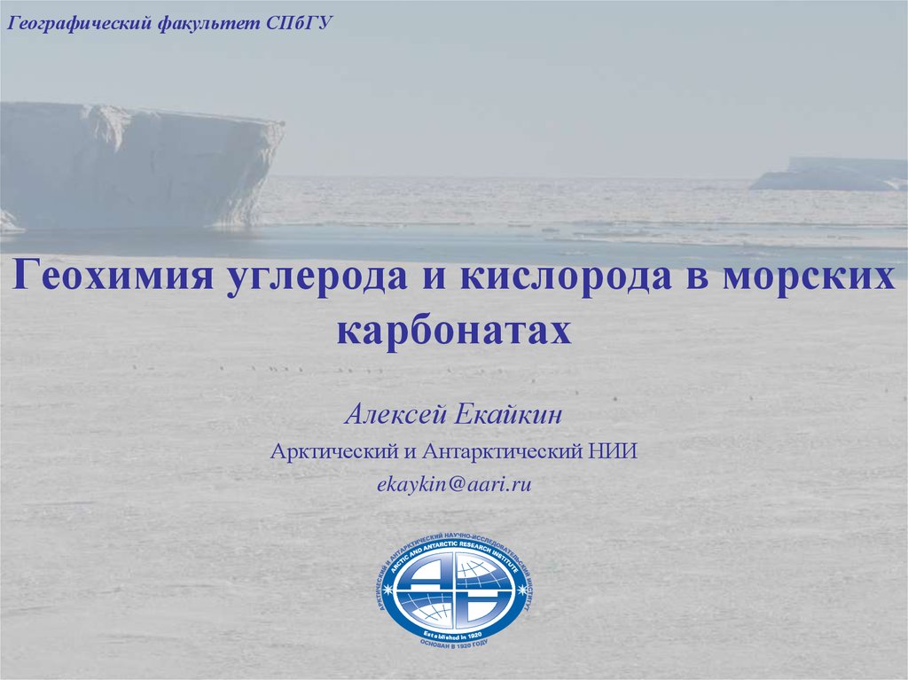 Географический факультет СПбГУГеохимия углерода и кислорода в морских