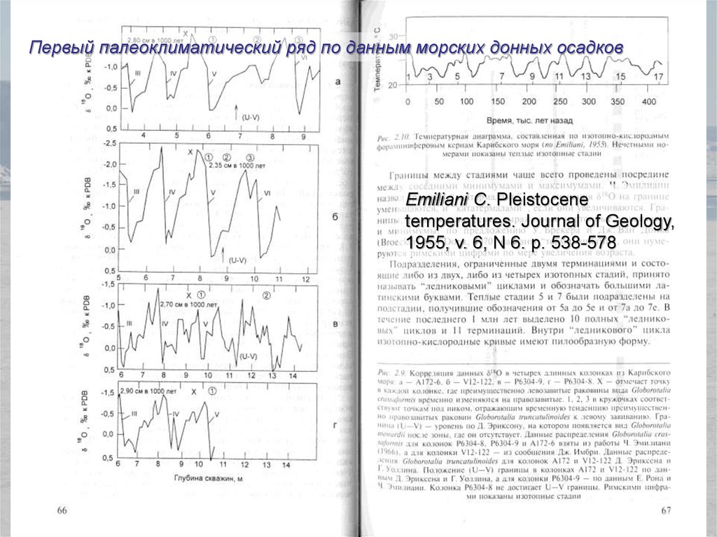 Первый палеоклиматический ряд по данным морских донных осадковEmiliani C. Pleistocene